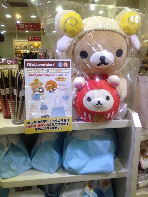 福袋の棚の上に、今年の干支である羊の格好をしたリラックマとダルマのコリラックマがいました。お正月らしいですね~。