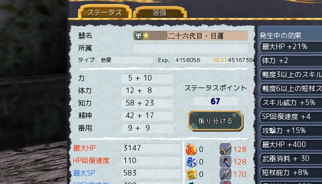 まだ詳しく検証していませんが、通常雑魚は弱く、ボス敵はちょっと硬くなりましたね。無頼消滅で攻撃力・HPが著しく下がったのはボーナスでもらったステ振りでまぁまぁ補完。これから狩りにどう影響するかやってみないとわからないですね。あ、スキル使用時の耐久消費量が増加しているようですので注意が必要です。