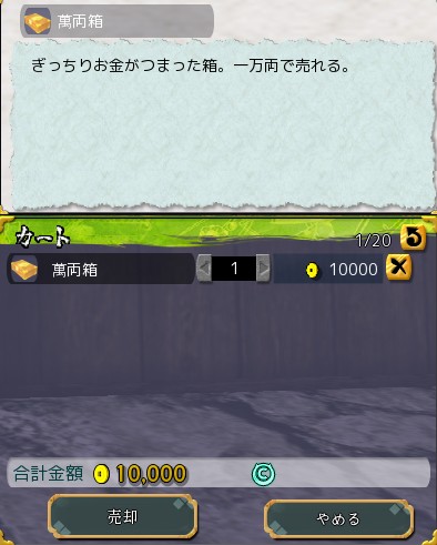 ↑売却用アイテム「萬両箱」。1万両で売れます。十万両等もあるようです。