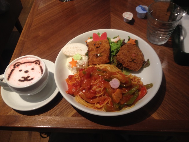 詳しくは上記の公式HPでご覧いただきたいのですが、表参道店ではとんかつとえびふらいのカレー、ぺんぎん?の抹茶ムースケーキが提供されているほか、ラテアートのキャラが違います。