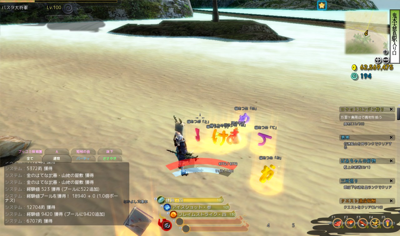 というわけで今日はストーリー方面の更新は一旦置いておいて、鬼斬で現在行われている新年お祝いイベント「鬼ヶ島 福集め」について書きます。