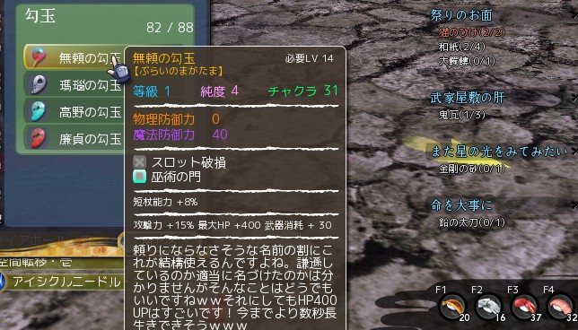 ↑今回の修正でゴミと化した無頼の勾玉。説明欄の煽り…。