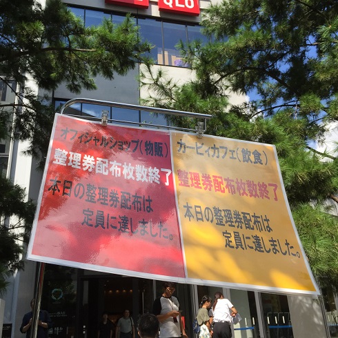 ・6時にはカフェ、オフィシャルショップ共に整理券の配布が終了していた(5時台の時点で規定人数に達していたという発言もあり)※公式には6時50分頃に「整理券の配布を終了」とのツイートが投稿される