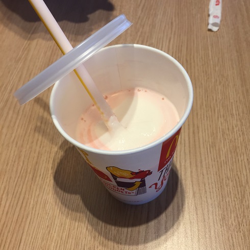ソラマチ4階のマクドナルド。このピンク色のシェイク、どう見てもカービィ。