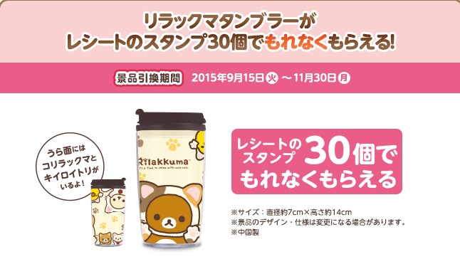 なんと、リラックマタンブラーが貰えるキャンペーンも同時開催!