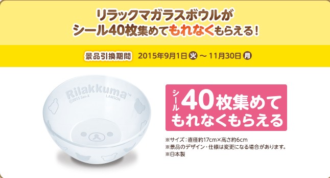 リラックマ×ローソンフェアではパンやスイーツなどに付くシールを40枚集めるとなんらかの食器が貰えるという今やお馴染みのものですね。